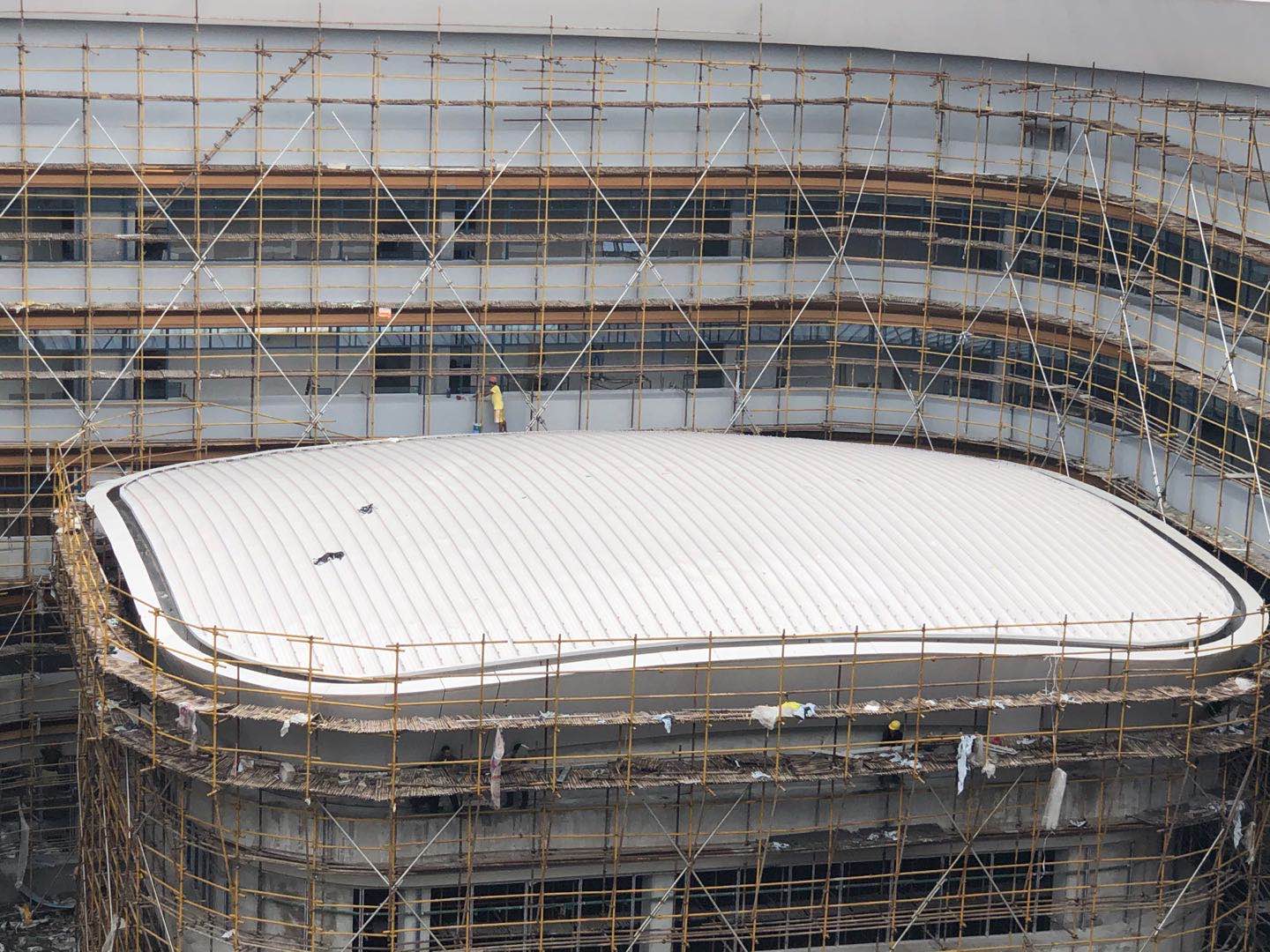 浙江省建设职业技术学院,位于浙江省绍兴市上虞区五星西路,我司承建产教融合中心和国际交流中心金属屋面工程,该工程面积约一万平方米,屋面采用直立锁边系统,屋面檐口采用铝单板。